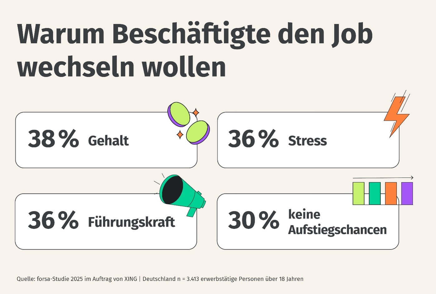 Die Wechselbereitschaftsstudie von XING gehört heute zu den wichtigsten Studien, wenn es um Einschätzungen von Beschäftigten über den Jobmarkt geht. Es geht um Job-Zufriedenheit, die Wechselbereitschaft, Bleibe-Gründe und Gründe, den Arbeitgeber zu verlassen. Die Studie gibt gleichzeitig wertvolle Antworten auf wichtige Fragen der Arbeitswelt: zu Home-Office, 4-Tage-Woche und Vereinbarkeit von Beruf und Privatleben.
